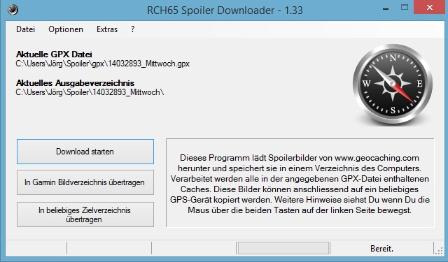 Spoilerbilder auf dem Garmin mitnehmen und direkt aus dem Cachelisting heraus aufrufen? Kein Problem. Entweder man macht das mehr oder weniger aufwändig über GSAK oder man läd sich ein kleines Programm namens RHC65 Spoiler Downloader herunter. Dieses Programm gibt es nun schon eine ganze Weile, als Besitzer eines Oregon 300 war ich aber immer außen vor da dieses nicht unterstützt wird. Doch nun habe ich das ganze mal mit meinem neuen Oregon 600 ausprobiert und muss sagen: Der Knaller!
